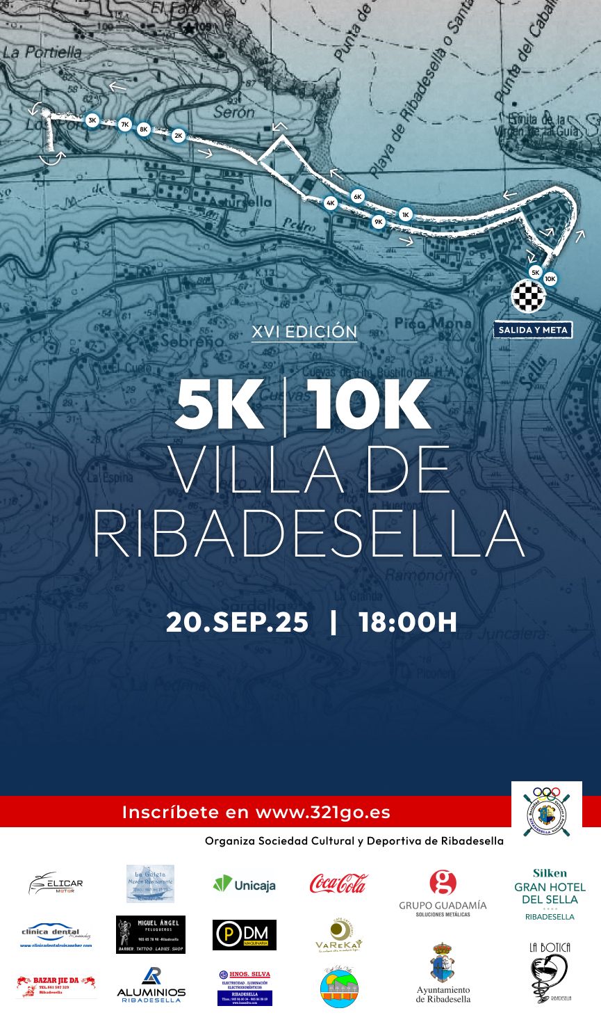 El Club Deportivo SOCIEDAD CULTURAL Y DEPORTIVA DE RIBADESELLA, organiza la XVI edición “10 Km/5 km Villa de Ribadesella”, el sábado 20 de septiembre de 2025, que discurrirá por la zona de la playa de Ribadesella, con salida a las 18:00 horas para el 5k y a las 18:10 el 10k, ubicada la salida en la c/Coronel Bravo y meta en el mismo lugar…